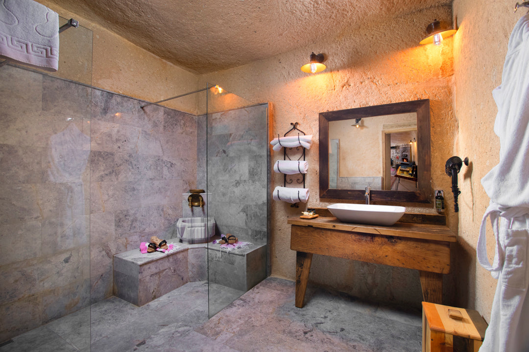The Cave Suite at Dream of Cappadocia offers a truly unique experience, allowing you to immerse yourself in the charm of staying in a cave room. The suite is thoughtfully designed with a comfortable double bed, creating a peaceful retreat.